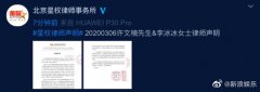 3月6日,许文楠先生、李冰冰女士委托北京星权律师事务所发表律师声明,表示近日有用户伪造李冰冰16岁男友偷拍亲密照,女方为男方还债致分手等不实言论,严重干扰了当事人正常工